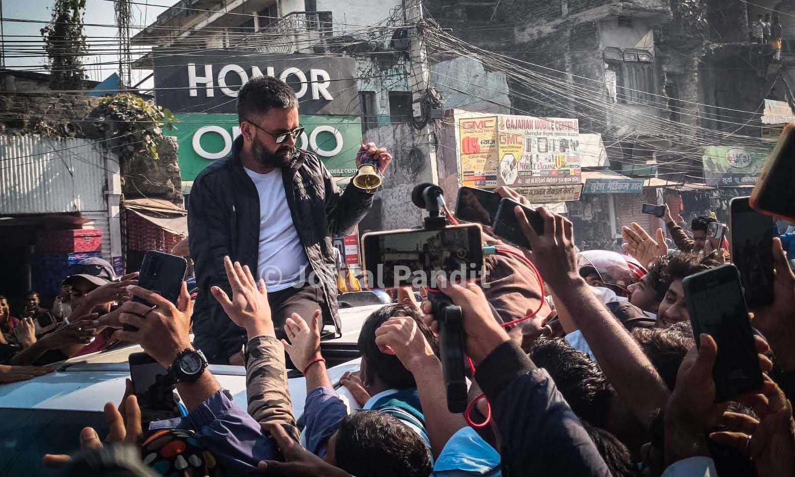 यस क्रममा बालेनले गाडीबाटै हात हल्लाउँदै र घण्टी बजाउँदै समर्थकहरूप्रति अभिवादन गरेका थिए।