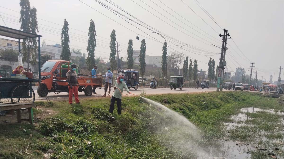 वीरगंज, ७ फागुन। वीरगंज महानगरपालिकाले लामखुट्टेको बढ्दो प्रकोप नियन्त्रण गर्न ‘पम्प स्प्रे’ मार्फत विषादी छर्ने अभियान शुरू गरेको छ।