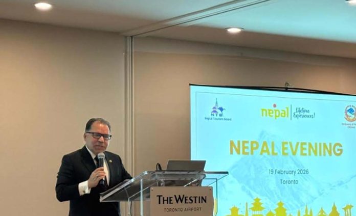 काठमाडौँ, ९ फागुन : क्यानडाको ओटावास्थित नेपाली दूतावासले नेपाल पर्यटन बोर्डसँगको समन्वयमा टोरन्टोमा हालै प्रवर्द्धनात्मक कार्यक्रम ‘नेपाल इभिनिङ’ आयोजना गरेको छ ।